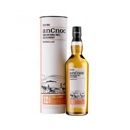 AnCnoc is a rather curious whisky. This fine single malt is created using traditional production methods. The end result is a lighter-tasting single malt that makes no compromises on quality. anCnoc 12 Year Old is recognised the world over. Known as a must-have in every whisky drinker's collection, it is light yet complex. Smooth yet challenging.