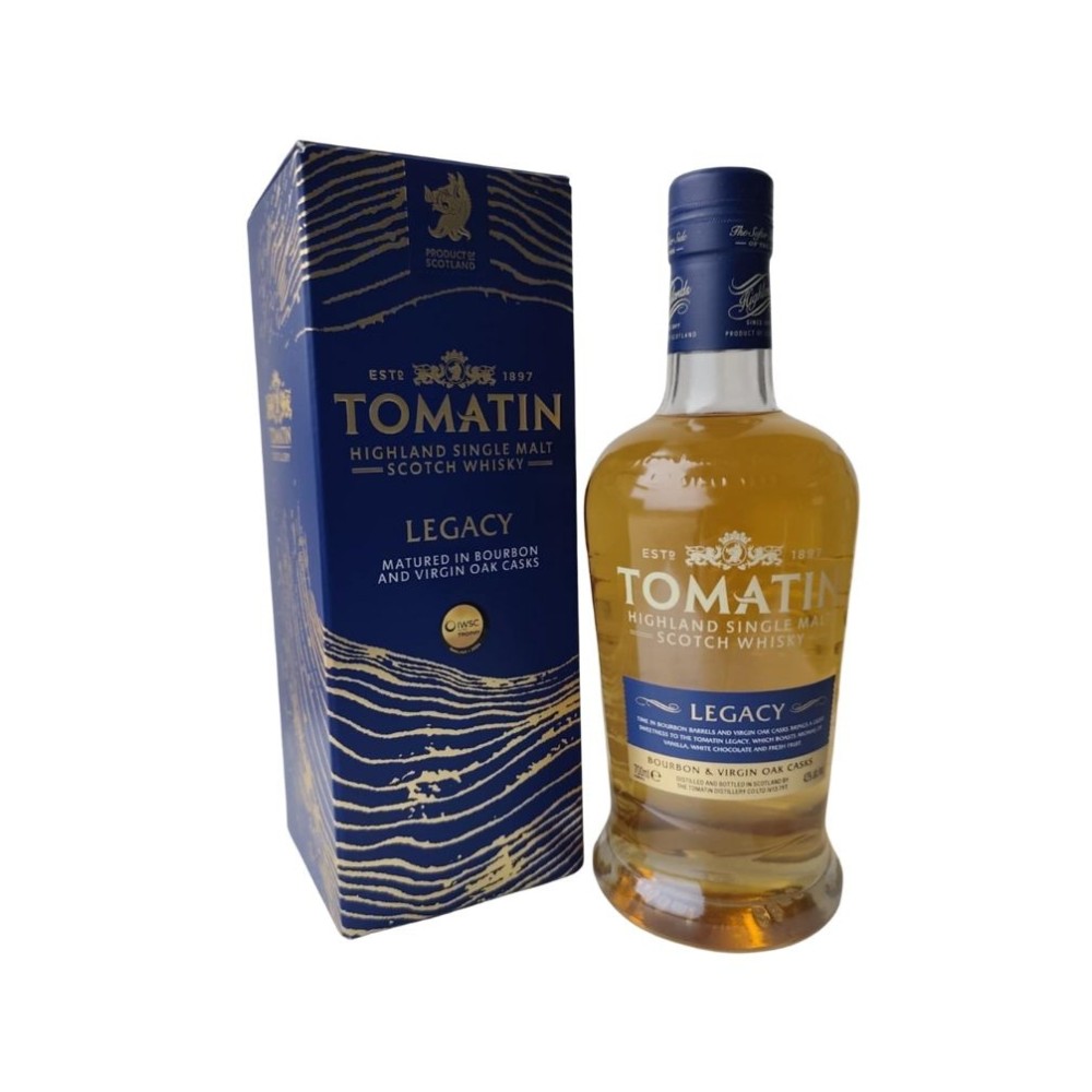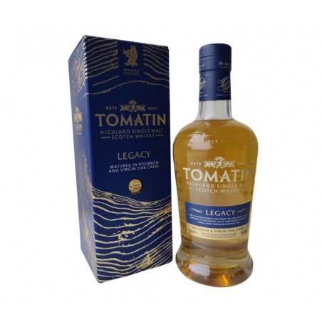Tomatin Legacy est un scotch non tourbé qui dégage des arômes de gousse de vanille, chocolat blanc et cannelle. En bouche, de douces vagues de fruits frais parsemées de gingembre émergent avant une finale légère et nette.