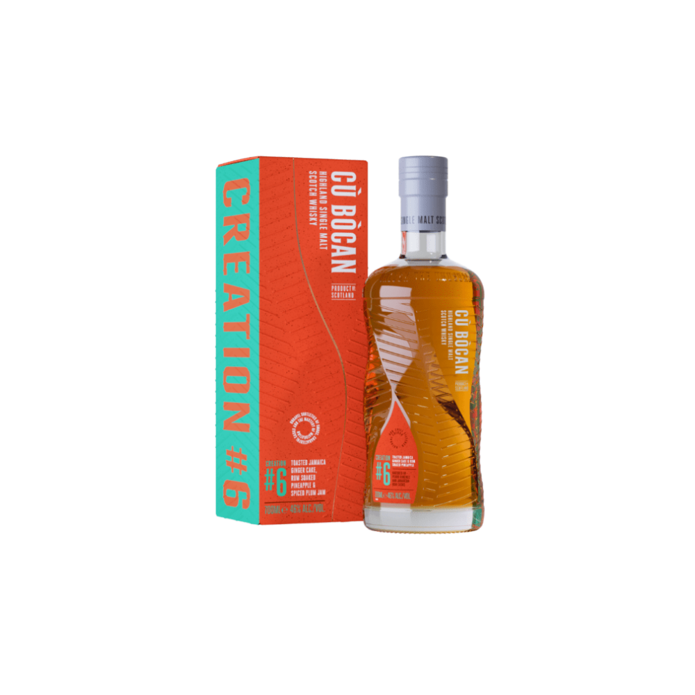 LA Création #5 de Cu Bocan a été fini dans un type de fût incroyablement rare, le chêne des Andes. Le mélange des propriétés uniques du chêne des Andes et de la fumée subtile de Cu Bocan a produit des notes de chêne légèrement carbonisé avec des nuances profondes d'herbes florales exotiques et de bananes fendues au feu de camp.