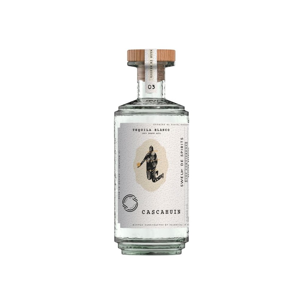 Swell de Spirits X Los Convidados, Tequila Blanco produit par la Distillerie Cascahuin, Batch 2024, Agave 100% Azul de plus de 5 ans, Cuisson en four sousterrain pendant 7 jours, Extraction du jus à la Tahona, Fermentation pendant 5 jours en cuve en bois avec les fibres d’agaves, Double Distillation en Alambic en Cuivre.