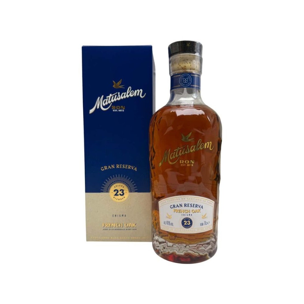 Le rhum Matusalem Enigma Gran Reserva 23 French Oak est la toute dernière nouveauté de la gamme haut de gamme de Matusalem. Leur savoir-faire exceptionnel en matière de vieillissement en fûts selon la méthode Solera s’y déploie pleinement. Durant ces 23 années de vieillissement en Solera, seuls des fûts ayant contenu du rhum de Bordeaux ont été utilisés, conférant à ce rhum une texture onctueuse, une grande complexité aromatique et une richesse de saveurs incomparable.