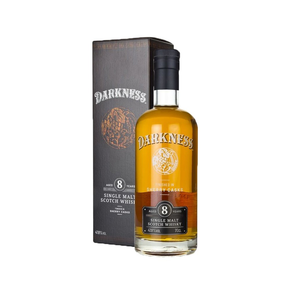 Een geweldige 8 jaar oude Single Malt Scotch Whisky. Het distillatieproces geeft de Darkness 8Y een uniek karaktervolle smaak en een complexe body. 8 jaar gerijpt in ex-bourbonvaten, die een zoete en romige textuur geven.De diepte en complexiteit van deze Single Malt wordt vervolgens aangevuld met maar liefst drie extra maanden rijping in op maat gemaakte ‘Oloroso Sherry Cask Octaves’.De sterke invloed van het sherryvat zorgt voor levendige aroma’s en smaken, een teken van karakter en zorgt voor een opmerkelijk ingewikkelde ervaring van intensiteit en diepte.
