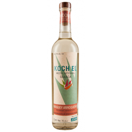 och Arroqueno is made with wild maguey Arroqueno (agave Americana). Typically, this agave can take up to 20 years to mature, before it is pit roasted in a traditional fashion. Given the length of time needed to grow this elegant agave, sustainability of Arroqueno has become a big issue. The Koch Arroqueno is made by Adrian Bautista in Rio de Ejutla, Oaxaca. This mezcal has high fruity notes with hints of earth and herbs, clay and smoke.