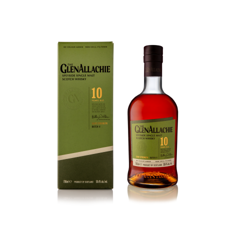 PALATE: On the palate, GlenAllachie 10 years Batch 11 offers a rich and balanced sensory experience. A soft sweetness of sugar syrup and honey harmonizes with a slight spice of young oak and cocoa beans. The flavors of candied cherries, burnt plum jam, and raisins enrich this palette, supported by persistent notes of dark chocolate.