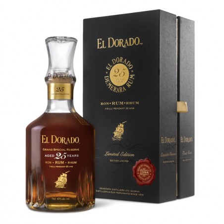 Créée pour marquer le tournant du millénaire, El Dorado 25 ans Grand Special Reserve possède une douceur soyeuse qui défie le cognac le plus ancien.