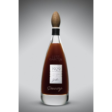 Marc Darroze vertelt ons dat het oogstjaar 1929 verrassend fris is, ondanks zijn hoge leeftijd. Aan de aroma's van koffie, cacao, honing en leer die men in een armagnac van deze leeftijd aantreft, worden tonen van pruimen en vijgen toegevoegd, waardoor het een voortreffelijk evenwicht krijgt.
