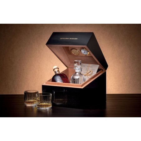 1 speciale grappa met langere rijping (uitsluitend 20 jaar oude eik met gemengde rode druivenschillen)