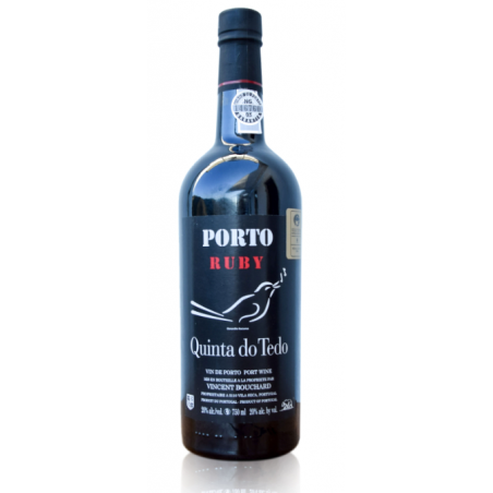 De Quinta Do Tedo Ruby 5 Y is een uitzonderlijke Port, afkomstig van de emblematische druivensoorten Touriga Nacional, Touriga Franca en Tinta Roriz, geteeld op de jonge wijngaarden van het landgoed.