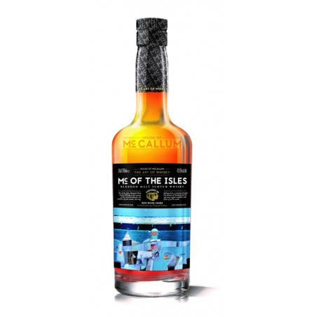 Clan McCallum heeft zijn wortels op de eilanden van de westkust van Schotland, waar men deze speciale whisky-aroma's van zoute gerookte schelvis, citrusfruit en lichte turf kan vinden. Archibald toont in zijn schilderij al deze elementen, de havens, de distilleerderijen, het veen, de zee, het fruit en de algen. Alle karakters van de eilanden en van het land.